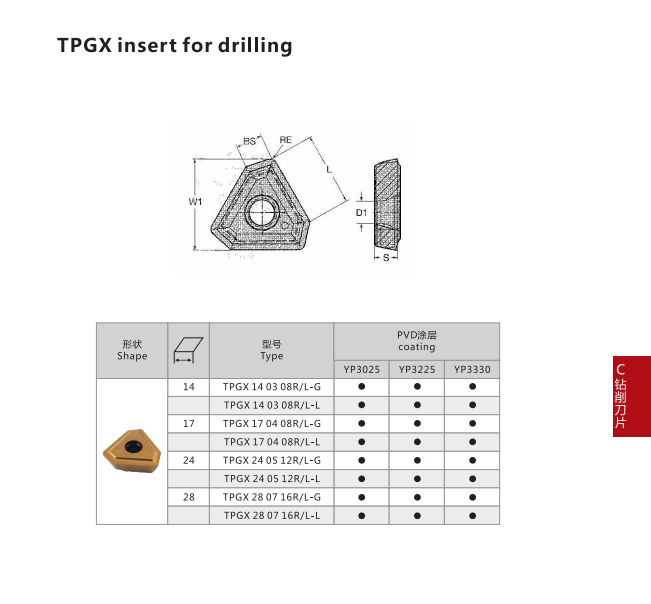 用于深孔鉆削硬質(zhì)合金切削刀具鉆削刀片TPMX1403-RG/TPMX1704-RG/TPMX2405-RG/TPMX2807-RG